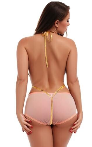 Deseeni Micro One Piece Swimwear Backless Monokini Teddy Lingerie, Gold One Size