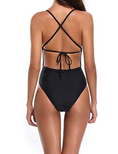 Jueshanzj Womens Hollow-Open-Back One-Piece Swimsuit S Black