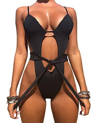• Jueshanzj Womens Hollow-Open-Back One-Piece Swimsuit S Black