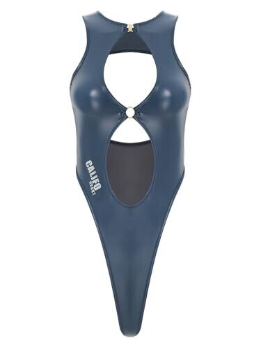 Deseeni Micro One Piece Swimwear Monokini Backless Swimsuit Navy, Onesize
