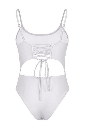 • Meyeeka Scoop Neck Cut Out Front Lace Up Back Monokini Swimsuit (White, Small)