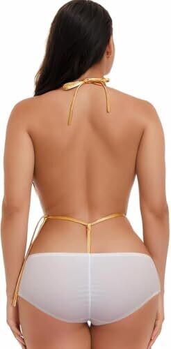 Sexy Mini Monokini Swimwear for Women Pu Leather One-Piece Halter Extreme Micro Bikini Teddy Lingerie Swimsuit (AU, Alpha, One Size, Regular, Regular, Gold)