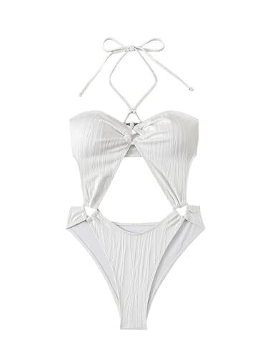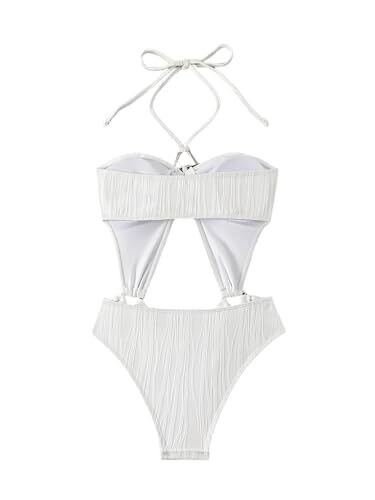 Supa Hollow Out One Piece Swimsuit for Women Sexy Thong Swimwear, White, Large