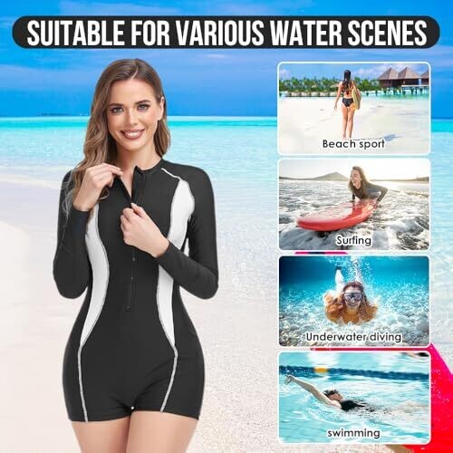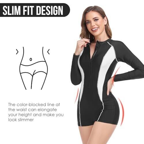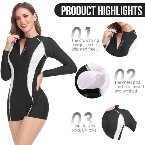 - Designed for performance and style, this long-sleeve rash guard swimsuit offers confident coverage and a flattering silhouette for women.