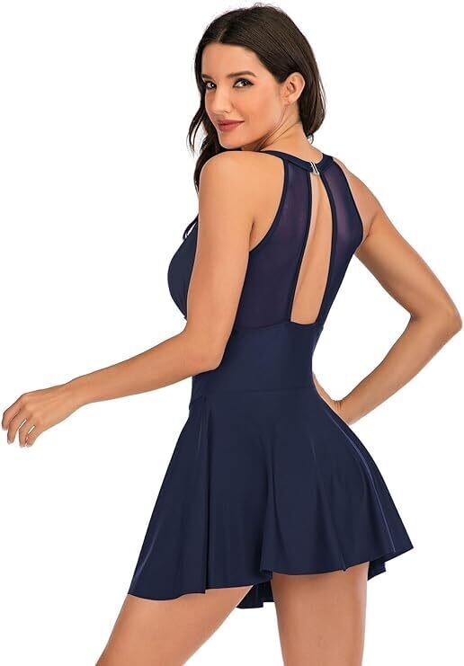 Lojieleive Swim Dress High Neck Halter Modest Skirt (AU, Alpha, X-Large)