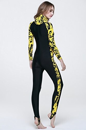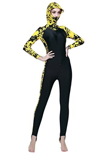 Simple classic design. Easy-pull zipper for convenience. Soft texture, anti-bacteria, and good abrasion resistance. Breathable, quick drying, lightweight, and soft on skin. Full-length swimsuit provides total body cover.