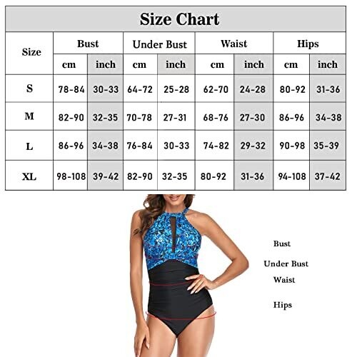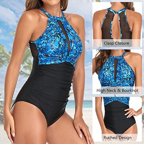 Sedex Women's High Neck Tummy Control One Piece Swimsuit with Cup Halterneck, Blue, M