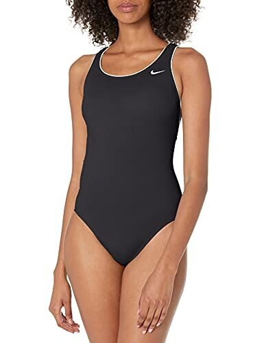 Nike Women's Standard Solid Powerback One Piece Swimsuit, Jet Black, Medium