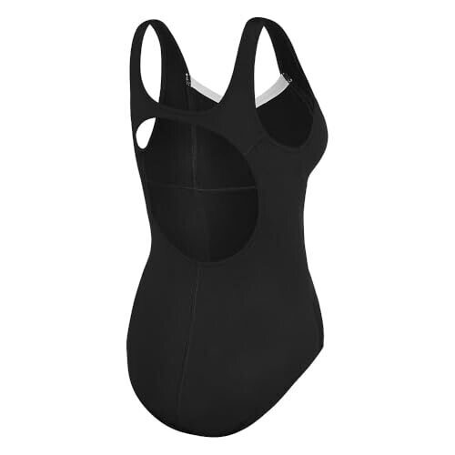 Speedo women's contour clipback one piece swimsuit in Black/White features flattering contour shaping for a silhouette boost, a secure clip back, and a low leg for freedom of movement. Durable, chlorine-resistant fabric makes it ideal for swimming and water activities.