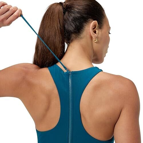 - Racer Zip Swimsuit provides a secure closure and streamlined fit with a front zip and back design.