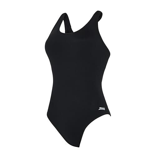 Zoggs Women's One Piece, Ecolast+ Fabric, Shelf Bra, Black, Chlorine Proof