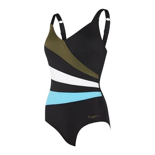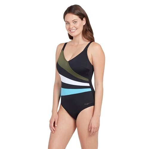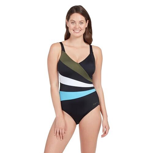 Zoggs Women's Wrap Panel Classicback Swimwear, Black/Khaki/White, 34