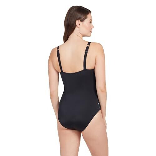Zoggs Women's One Piece, Ecolast+ Fabric, Shelf Bra, Black, Chlorine Proof