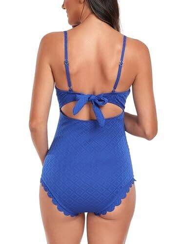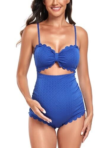 - Embrace your pregnancy with EastElegant's maternity one-piece featuring a flattering back cutout and scalloped trim for stylish confidence at the beach.