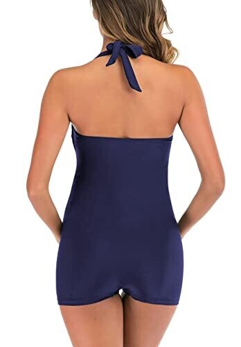 Eastelegant Maternity One Piece Swimwear Halter Swimsuit Boyshort (Navy Blue, M)