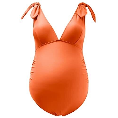 Ginkana Maternity Swimsuit with Tie Shoulder V-Neck Monokini, Orange, Medium