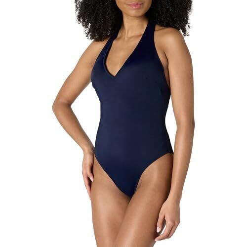Amazon Essentials Women's Halter One Piece Swimsuit, Medium, Navy
