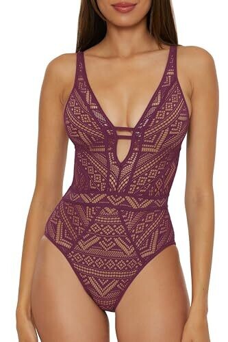Becca Color Play One Piece Swimsuit, Plunge Neck, Crochet, Bathing Suit, Aubergine (A), Large