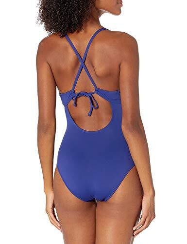 Cole of California Women's Cross Back Plunge Swimsuit, Navy Mesh Mix, 8