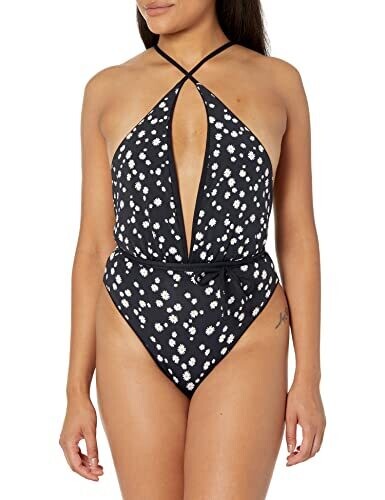Maaji Women's Black Orchid Safari V Plunge One Piece Swimsuit, Large, Black