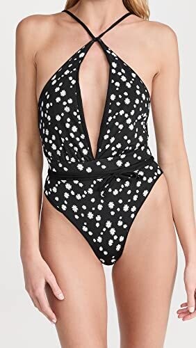 • Maaji Women's Black Orchid Safari V Plunge One Piece Swimsuit in a bold black for a sleek, statement-making look.