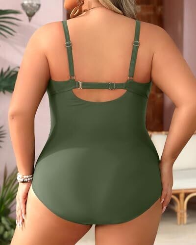 Aqua Eve Plus Size Swimsuit for Women Tummy Control Bathing Suit, Army Green