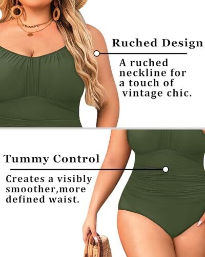 - Flaunts retro-inspired one-piece design with tummy control ruching for a flattering silhouette.