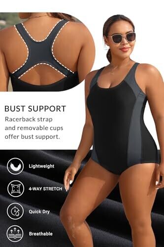 - Built-in bra and criss-cross racerback allow freedom of movement for swimming and workouts.