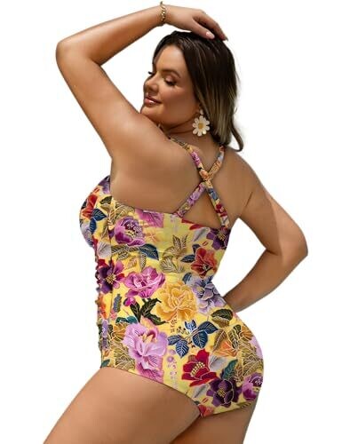 • Curvtide Floral One Piece Swimsuit Women Plus Size Swim Romper Adjustable Straps