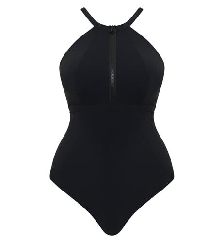 Curvy Kate Women's One Piece Swimsuit offers a flattering silhouette and comfortable fit with a sleek neckline and seamless construction for all-day wear. Fully lined and non-wired for flexible support, secure front zipper with swan-hook, quick-dry fabric, versatile coverage.
