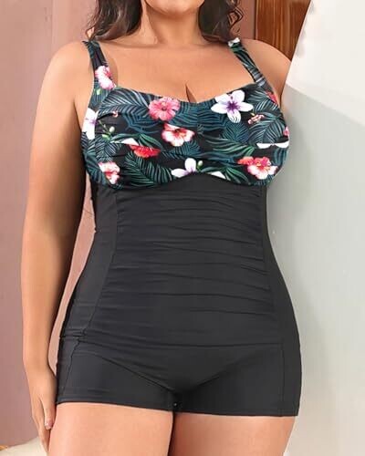 - Elegant retro-inspired one-piece design with tummy-slimming ruching for a flattering silhouette.