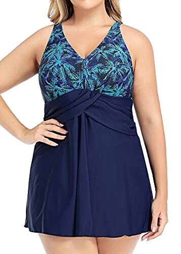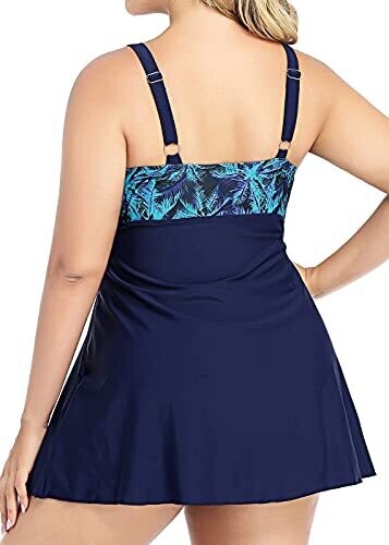 PERONA's plus-size swimdress flatters every curve with a retro-inspired one-piece design. It offers an A-line silhouette, ruched bust and waist, built-in liner for tummy control, adjustable straps, and a V-neck for comfortable, resort-ready coverage.