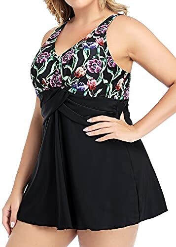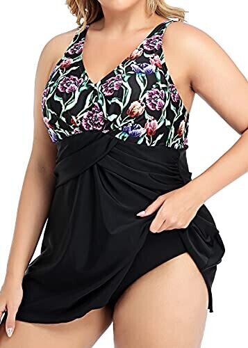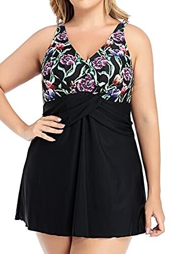 • Perona Women's Plus Size Swimdress One Piece Swimsuit Retro Pin Up Bathing Suit (Garden, 22)