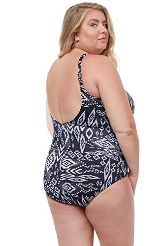 Profile By Gottex Peruvian Nights Full Figure V-Neck Swim One Piece, Black White, 22W