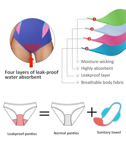 - Leakproof support with 4-layer absorbency to keep you comfortable during heavier flow days.