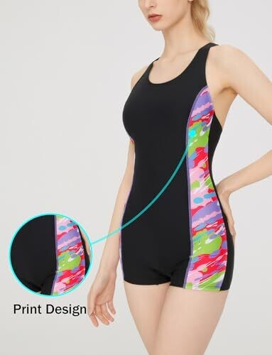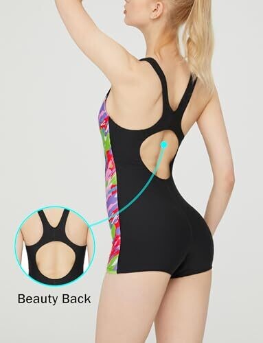 • Feoya Women Racerback One Piece Bathing Suit Competition Modest Boyleg Swimwear