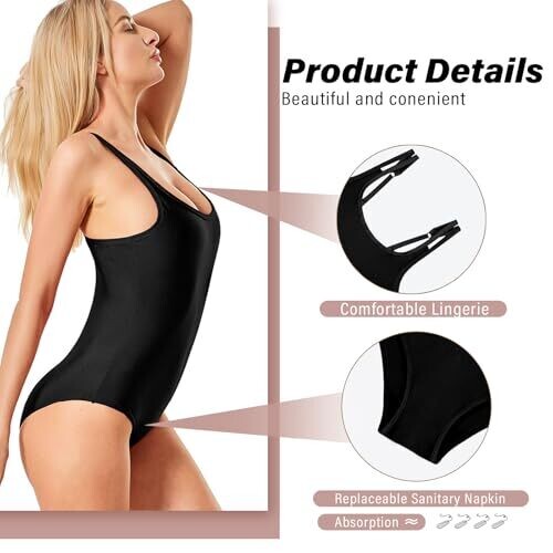 • Stylish black one-piece design blends fashion with function, suitable for teens, women, and girls seeking practical period protection without sacrificing style.
