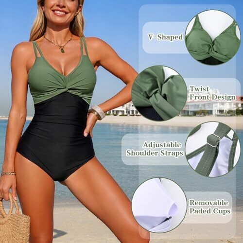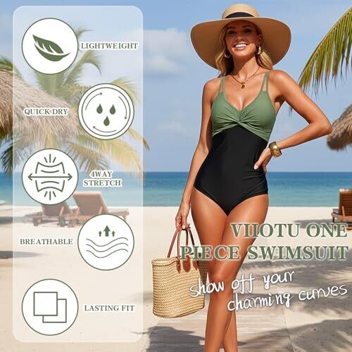 Viiotu One Piece Swimming Costume, Elegant Tummy Control Swimsuit, Adjustable Straps Removable Pads
