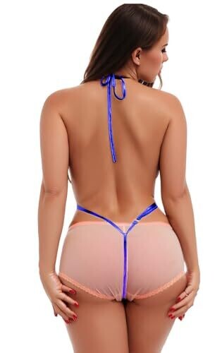 Deseeni Micro One Piece Swimwear Monokini Backless Swimsuit Navy, Onesize