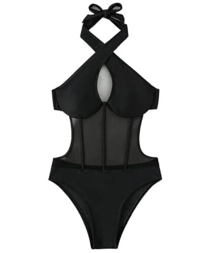 Halter One Piece Swimsuit Criss Cross Monokini Women Swimwear Hollow-Out Bathing Suit, Black, Medium
