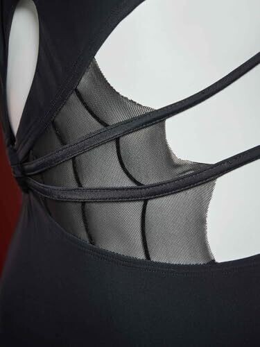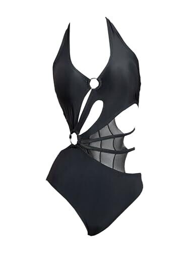 Meowcos Women One Piece Swimsuits with Spider Web Hollow Out - Edgy Slimming Swimwear, Black