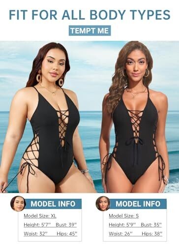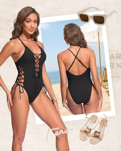 Tempt Me offers a bold black one-piece swimsuit with lace-up sides, a deep V-neck plunge and open back. The high-cut bottom elongates the legs, while breathable, smooth fabric and a secure cut keep you confident at the pool or beach.