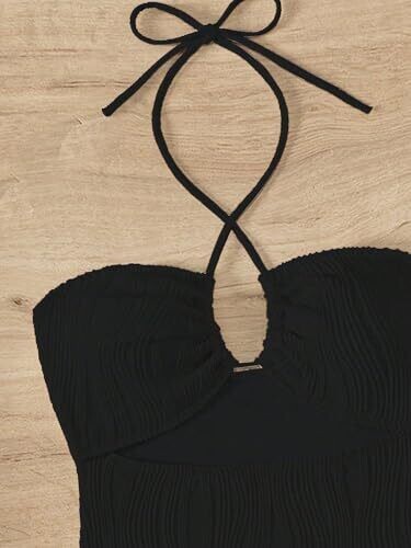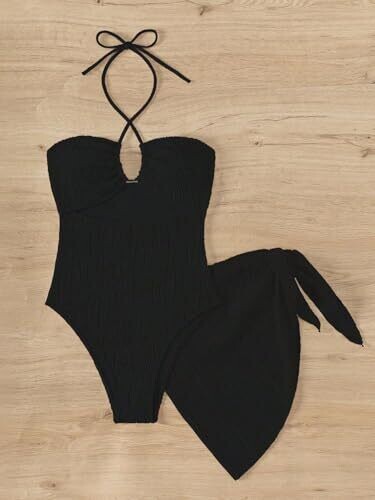 - Womens One Piece Swimsuit Solid Color Texture Hollow Out Halter Neck Bathing Suit for Women with Cover-Up 2-Piece Set, Black, Medium – a chic, confidence-boosting ocean-ready look.