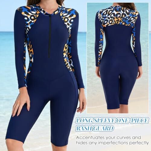 • Autowt Women's One Piece Rash Guard Swimsuit UPF 50+ Zip Front Long Sleeve