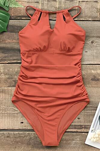 • Cupshe Women's High Neck One Piece Swimsuit Tummy Control Swimwear Bathing Suit, Orange, Medium