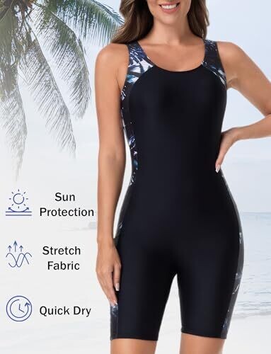 • Full back coverage combines modesty with modern sport styling for versatile water activities.
