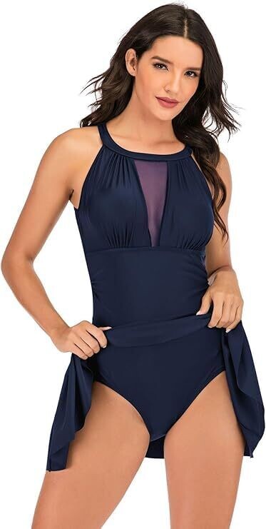 Lojieleive Swim Dress High Neck Halter Modest Skirt (AU, Alpha, X-Large)