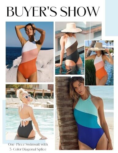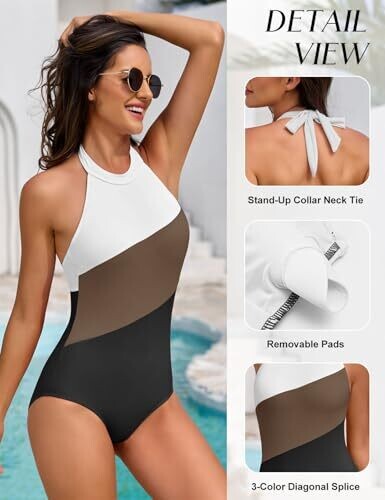 • Experience sleek confidence with a high-neck, colorblock design that flatters every body type.