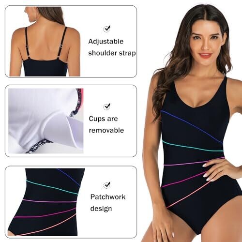 • Alpha Women’s One Piece Swimsuits, U-Back Straps Swimwear (AU, Medium, Black)