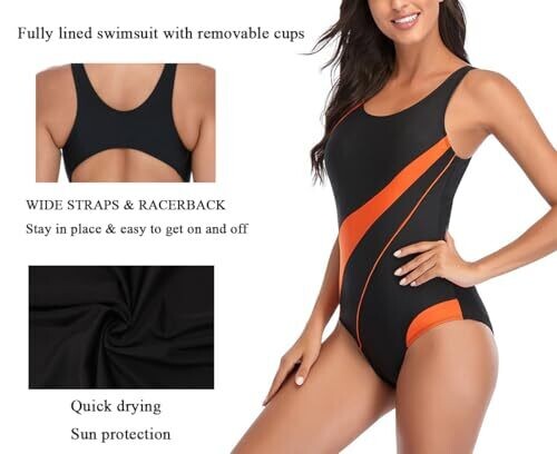• Miccina Women’s One Piece Swimsuit Racerback Swimwear for Women, 2-Black/Orange, Small